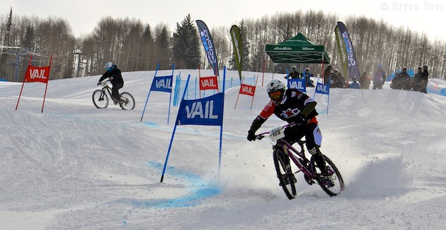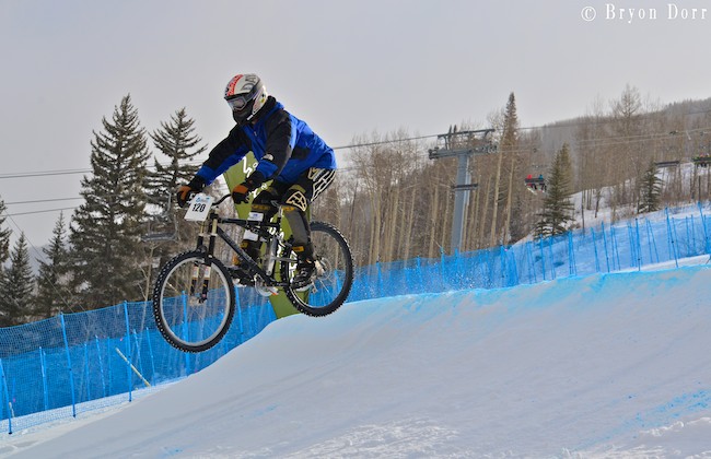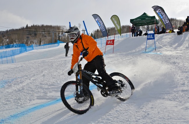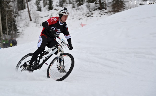 The on-snow mtn bike crit was so fun to watch. All style of mtn bikes tackled this hilly and fast course.