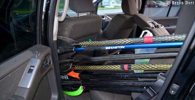 The final rapid on the Racquette is called Particle Accelerator and is a long, steep, junky slide with currents swirling in all directions like a shark-carrying tornado! After a quick scout, I flew down the slide, but got pushed to the right against a rock wall. I shouldered off the wall and continued down the steepest part of the slide, cascading into the pool at the bottom. On my second run, I stayed in the center of the flow and skipping cleanly in to the pool. Bryon and Dave aced the drop while the others walked. We had one last Class 3-4 slide before we took out and walked back to the start for lap #2. I signed up for the race and downed several Energybits to give me the strength of 10 men! I ran clean lines through all of the rapids and came in 4th place in the short boat class. The rest of my group took a leisurely run during the race. I told them they could float on for a couple miles and I would hike back to the car and drive down to pick them up. I arrived at the takeout to a scene of Dave clutching his shoulder in agony and Adam smiling with a “just humped the neighbor’s dog” look on his face. Apparently, Dave hit the right wall in Particle Accelerator and did a double barrel roll, breaking his paddle and smashing his shoulder before resorting to hand relief. It never turns out well when you get in a fight with a rock. After all, a rock feels no pain and an island never cries! What? Who says stuff like that! Adam had no such harrowing tale of mayhem, bloodshed, and salvation, he had simply flipped in the pool at the bottom of Particle Accelerator and couldn’t roll. Either way, there were bootie beers to drink and confessions to make.