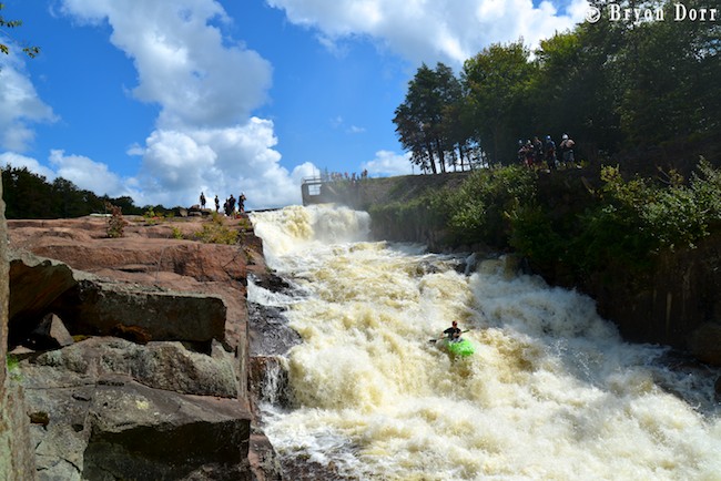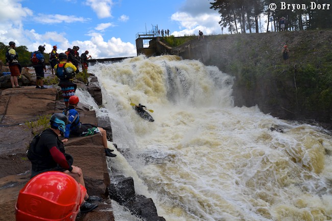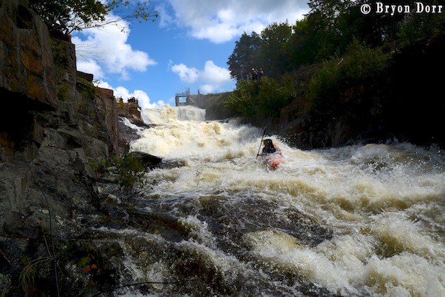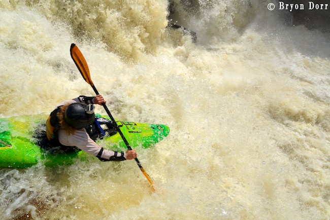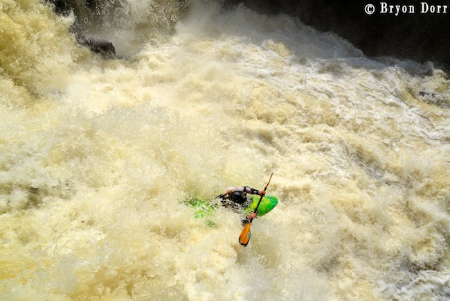 After socializing with several of my friends who were scouting, I got in my boat and prepared to get SIK! To have a successful run, you can’t give anything less than the whole nine yards! What does that mean?! I timed a good boof stroke off the first 15 footer, keeping my bow up to avoid the sharp rocks in the landing. From here, I worked my way to the center for the next 15 foot cascade and then went roaring down the remaining steep slide where I jogged slightly right to avoid a piton rock hurling water 10 feet in the air! Marshall! I was fired up and didn’t want to wait another year to run this drop so I headed back up to the top for another SIK run!