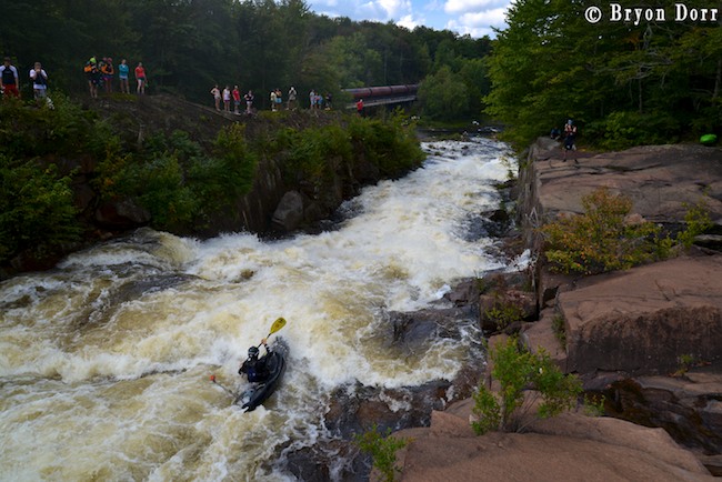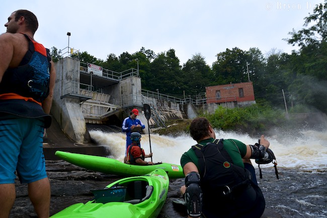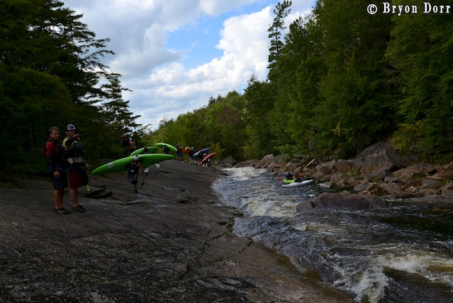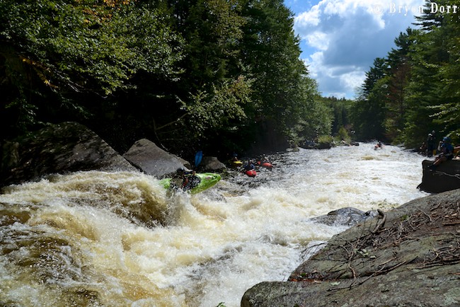 We hopped out just downstream to take a look at The Tub, arguably the most difficult rapid on the run. It contains two 8 foot drops back to back, both having big holes, with the bottom hole having a massive low head dam-like back flow. The first ledge is broken and requires a late boof stroke to avoid going deep. Then, you need to square up and lift your bow to clear the hole. My first run went smoothly as I jumped both holes like they weren’t even there. I decided to carry up and run it a second time. I caught a great late boof off the first one, hardly making a splash, but ended up blowing my stroke on the second drop and got surfed. I was able to paddle out of the left side with no problem but I knew I had to do better than that come race time. The rest of the group decided to walk except for Dave Kersey who ran it with no problem.