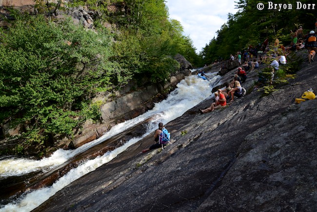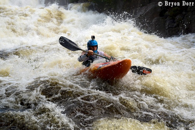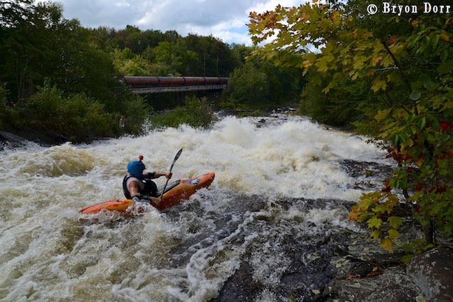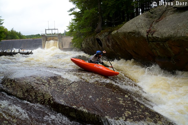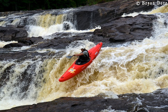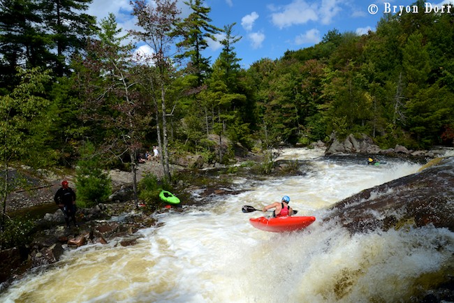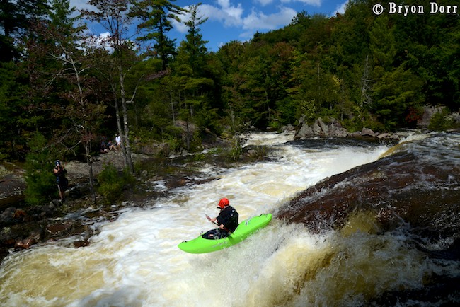 We were up at 8:30 and ready to go fire up some stout whitewater! The Racquette starts of with the biggest rapid of the day, Colton Falls, a series of ledges and slides dropping 50 feet, ending with a massive hole. It certainly is an intimidating way to start and many paddlers choose to skip this rapid in favor of a friendlier warmup. I slid into my Fluid Bazooka and grabbed my Accent Rogue paddle knowing that I had all the tools needed for a great run. They are both fantastic pieces of paddling equipment on their own, but in the proper hands they can be magic! In my first run, I started on the left and dropped off an 8 foot clapper before lining up nicely for an 8 foot boof off a horseshoe shaped ledge. I launched a SIKy, skying it out before heading down the slide. I got a little too far into the center on the slide so I knew I was going to have to blast through the hole. I timed my boof stroke to keep my bow up and went through with no problem. I carried back up to try a different line, approaching in the center. This was a faster option but it made it harder to line up for the boof. This time on the slide, I got far right and skipped right over the hole.
