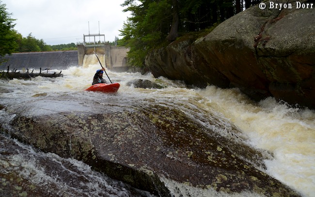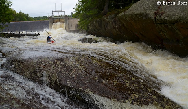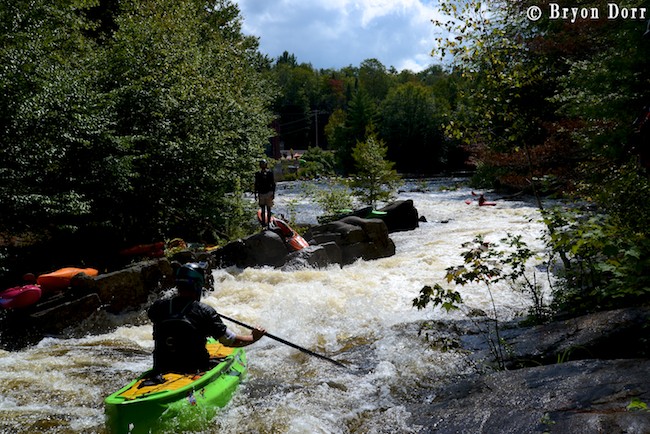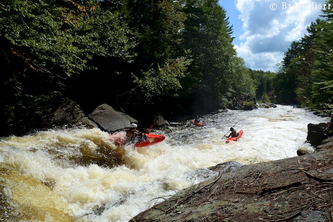 The next day, we headed to the creme de la creme of the Beaver River, the Moshier section. We had two more paddlers joining us on this day: Fluid team paddler Scott Martin and Becky Heinlein, Dave’s girlfriend, both came out to enjoy the one day each year this section runs. The Moshier section starts off with the dam spillway that drops 70-80 feet over a channel of sharp rocks in a series of three falls and cascades stacked on top of each other. I made the first descent of the bottom 2/3 of the rapid 15 years ago but, in recent times, people have been running it from the top. It is definitely intimidating but, hey, there’s way more important things to worry about. Y2K, shark attacks, lead paint, Dakota Fanning, small pox, Woodstock, moonshot, Watergate, punk rock, rock n rollers, cola wars, I can’t take this anymore! Huh? What the hell am I saying! This is hands down the best rapid in the region and is in all honesty, the main reason that I make the trek to the Beaver River each year! It definitely passes the acid test for stout rapids! Pure gold!